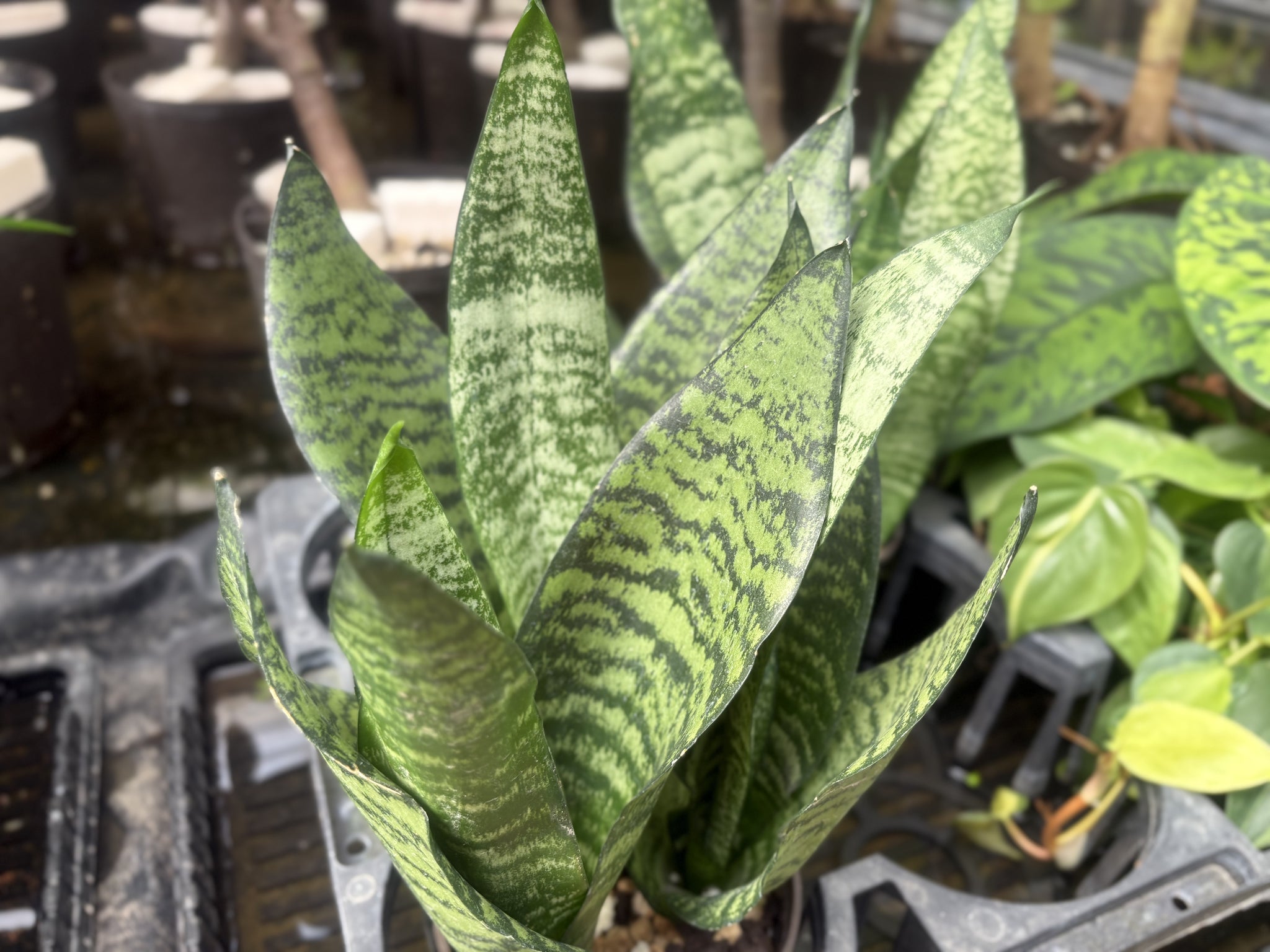 濃い緑の葉にゼブラ柄のような模様が全体に入った観葉植物です。 肉厚な葉に水分を蓄えており、乾燥に強く育てやすいです。
